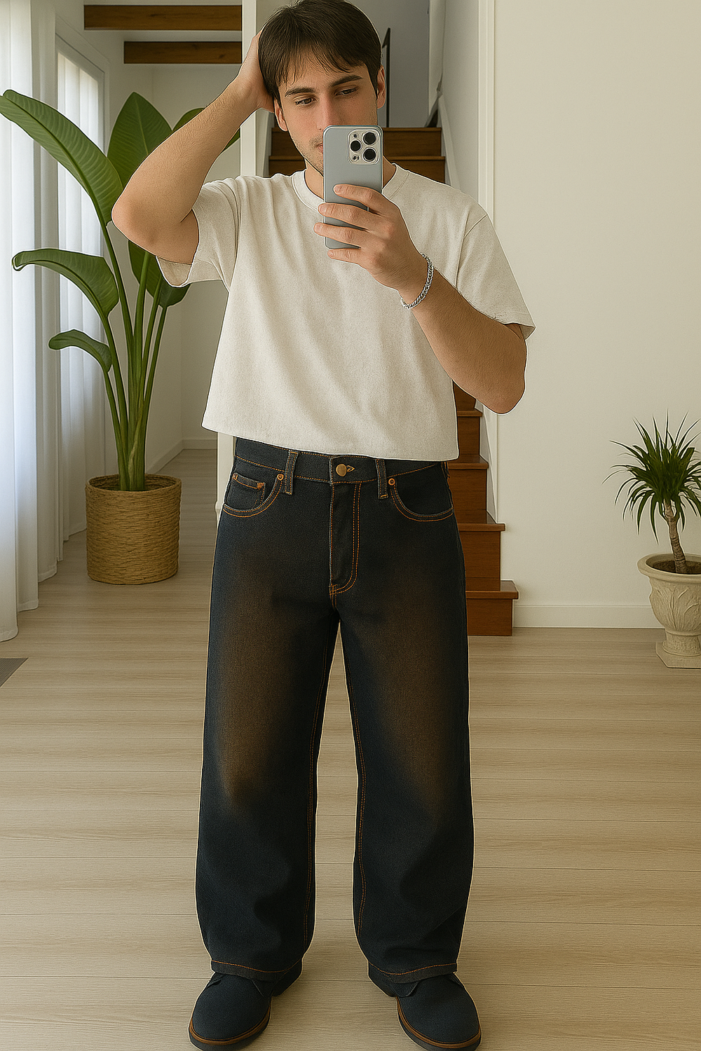 Step into bold, next-level comfort with our Baggy Fit Jeans for Men, featuring a premium brown-over-black faded wash on ultra-soft imported lycra fabric. These jeans are designed for statement-makers who value both style and comfort.