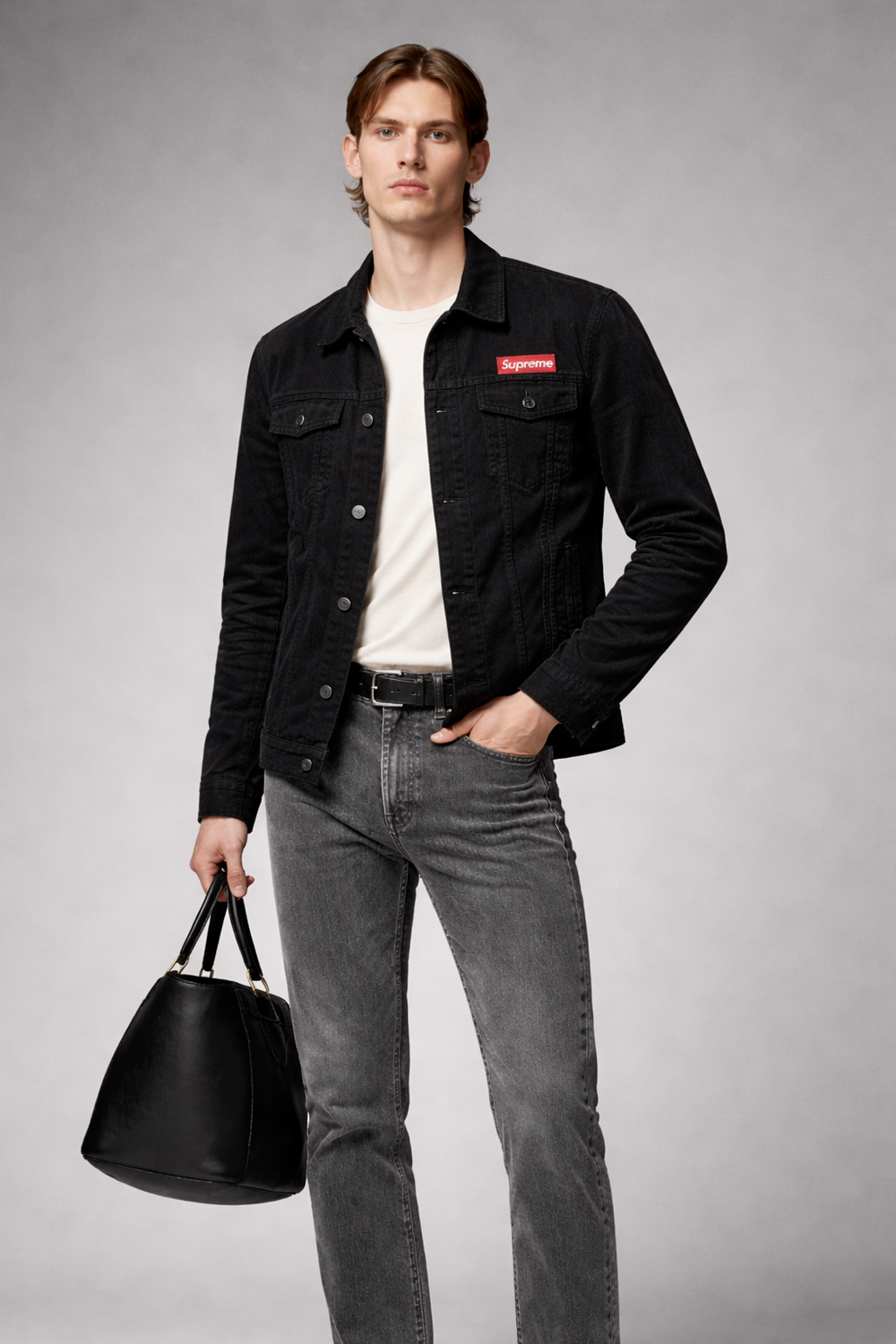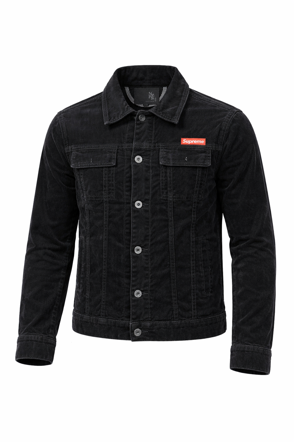Add a bold edge to your everyday look with this black corduroy jacket, designed for modern streetwear styling. Made from soft yet durable corduroy fabric, it features a classic shirt-style collar, full front button closure, and structured panel detailing. The contrast chest logo patch adds a standout touch, making this jacket perfect for casual wear, layering, and all-season use.