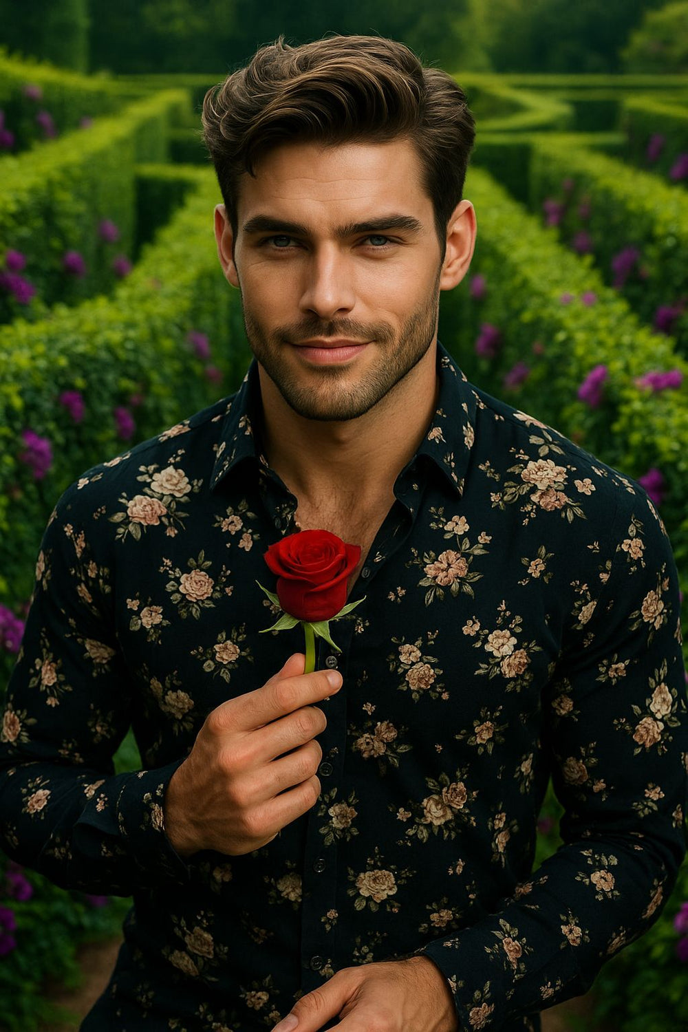 Black Floral Print Short Sleeve Shirt for Men | Premium Summer Party Wear