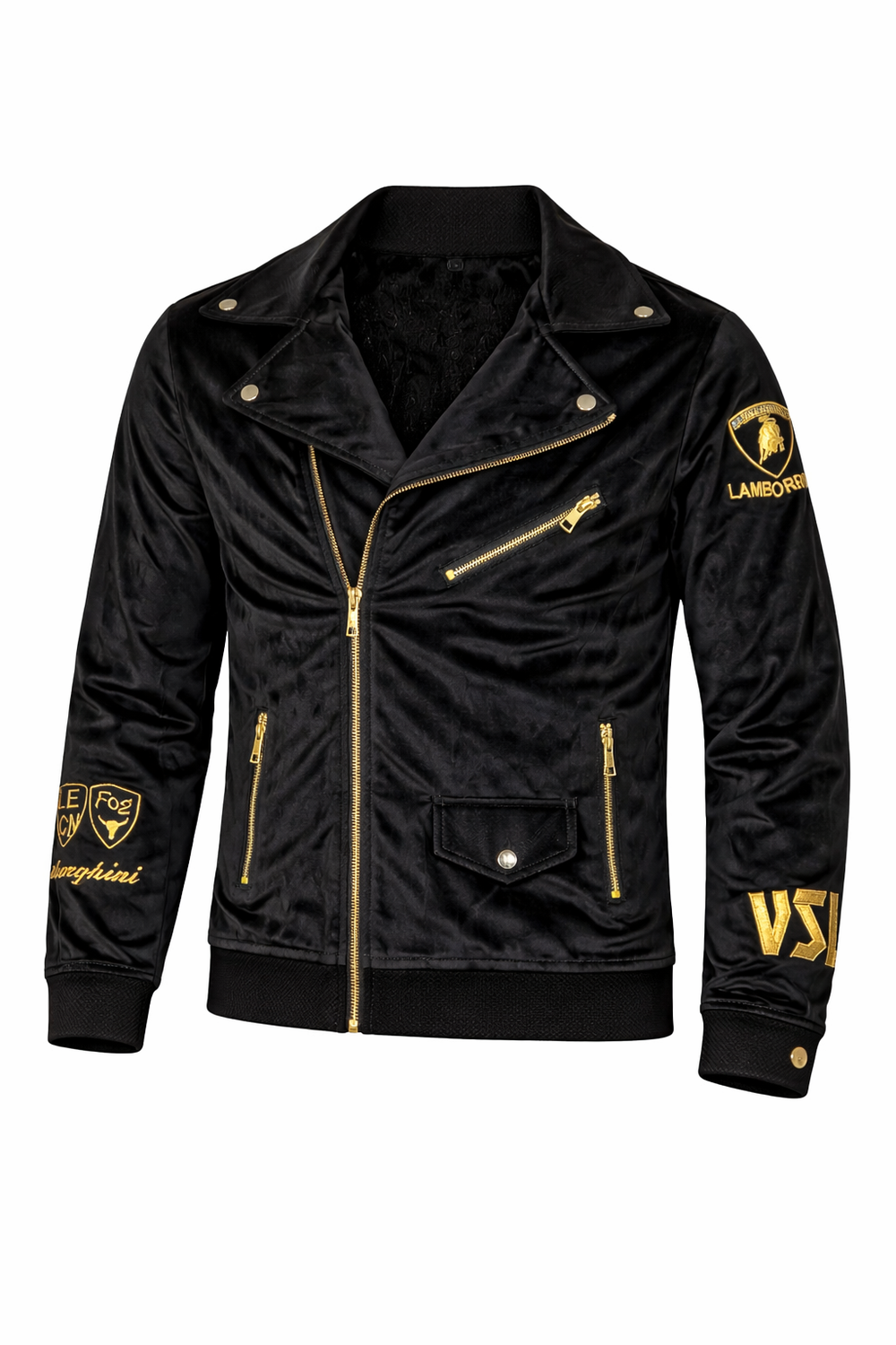 Lamborghini Inspired Black Biker Jacket with Gold Zipper Detailing