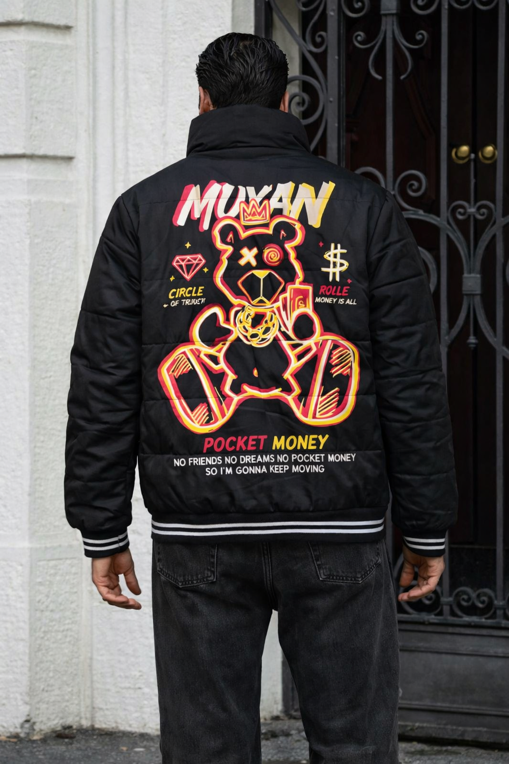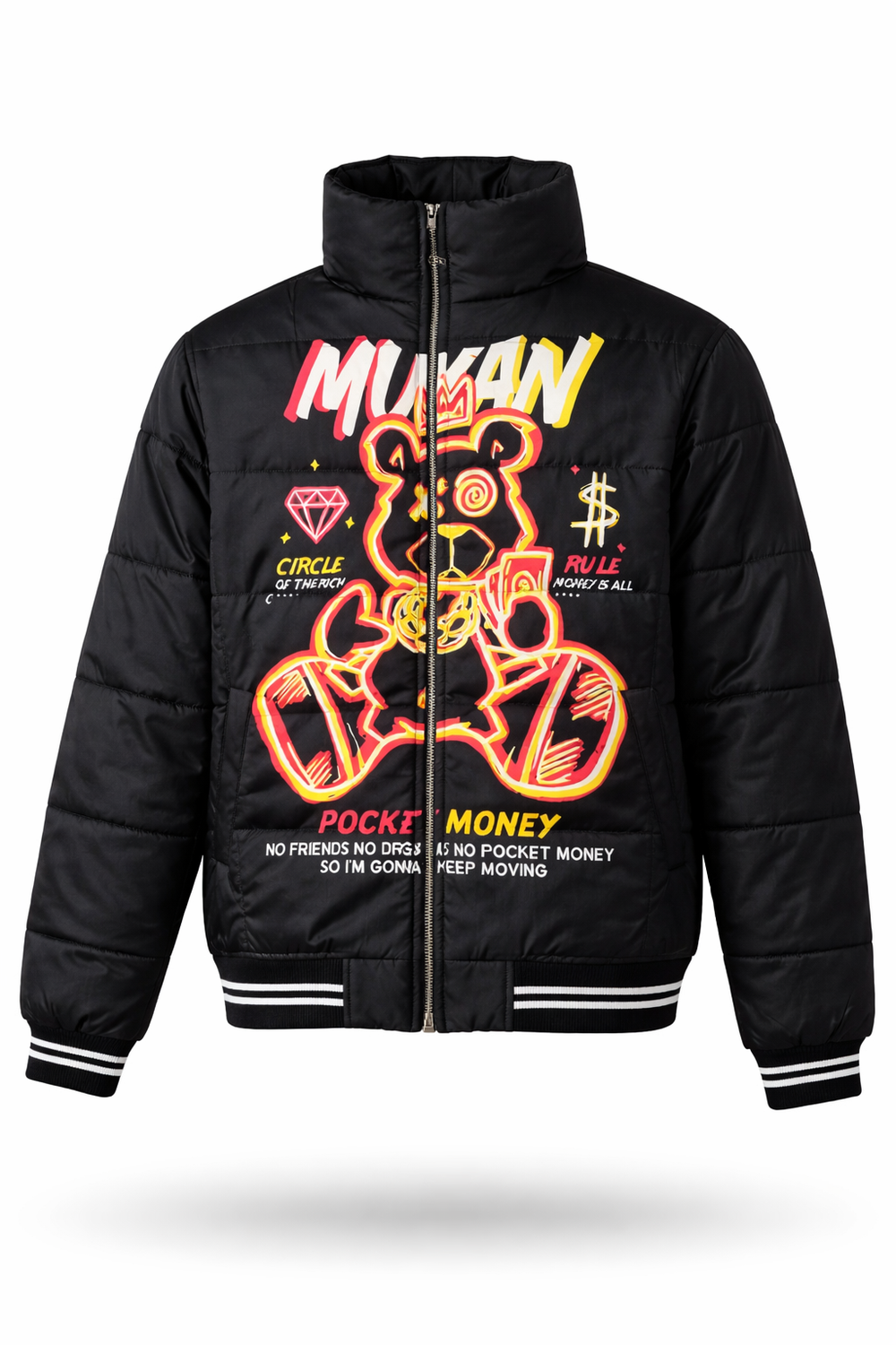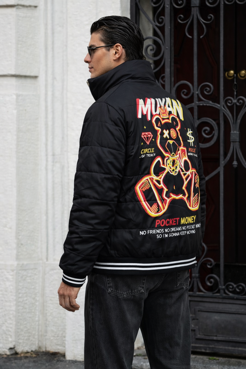 Men’s Black Graphic Puffer Jacket – Street Style Winter Jacket