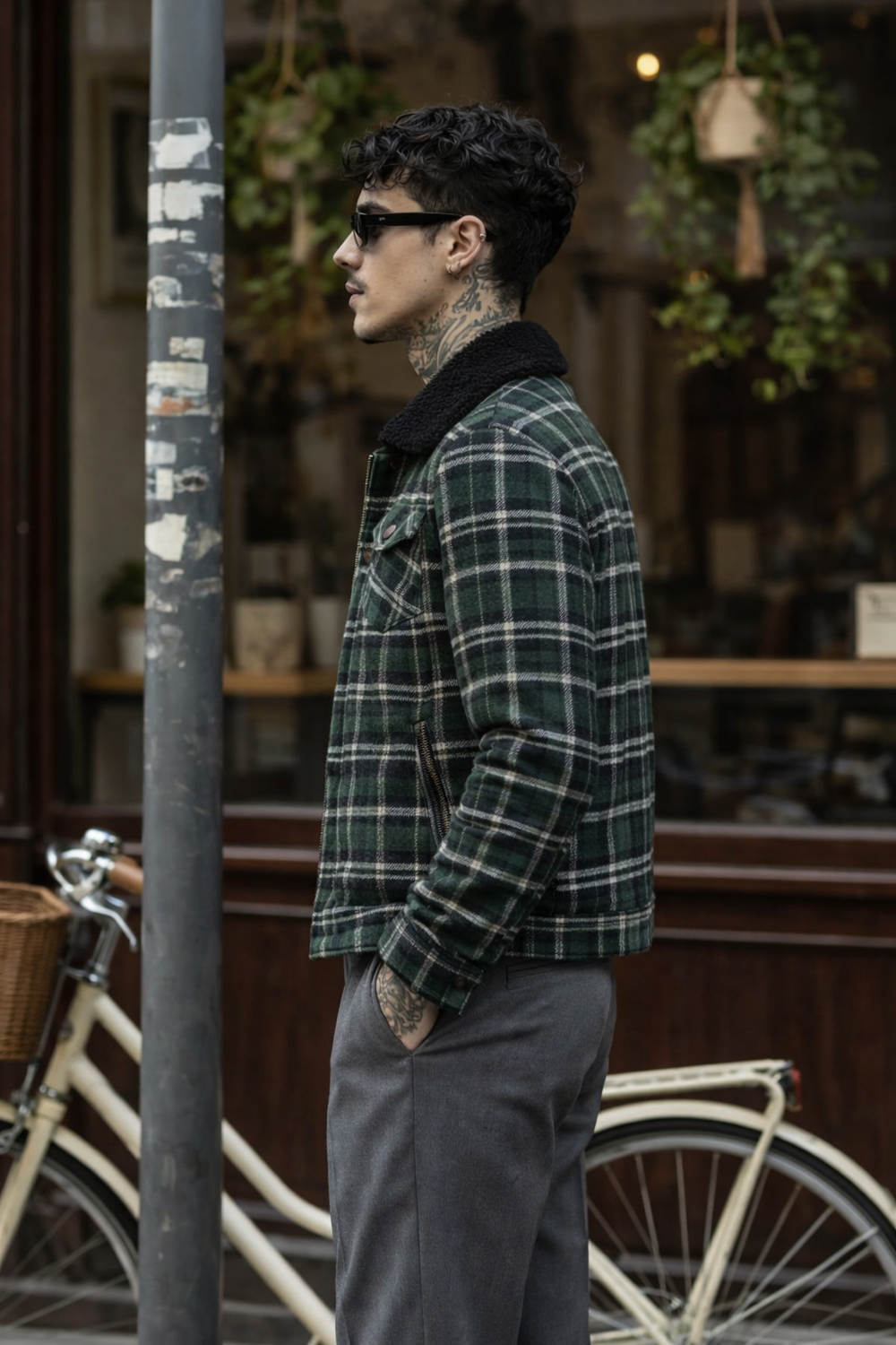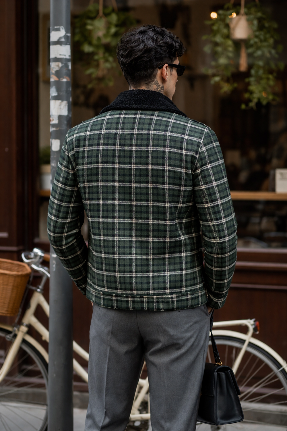 Men’s Green Check Winter Jacket with Sherpa Collar