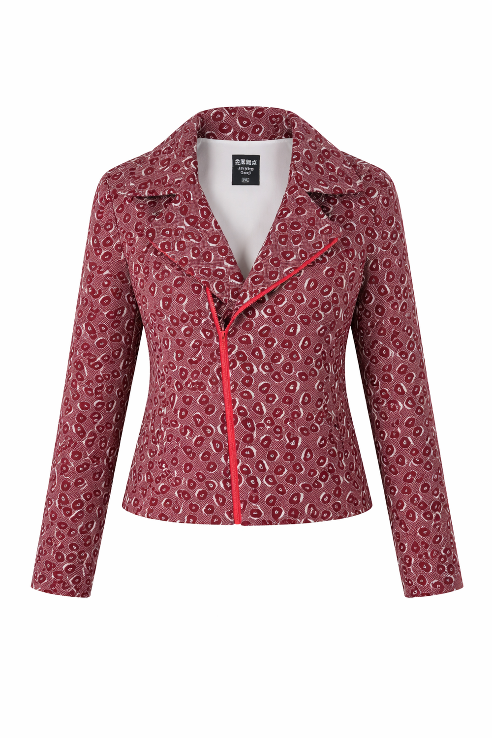 This image showcases the back pose of a male model wearing a premium printed jacket, designed to highlight the jacket’s fit, pattern, and structure from the rear view. The jacket features an all-over abstract print with a tailored silhouette that sits cleanly on the shoulders and waist. Styled with neutral linen trousers, the look keeps the focus on the jacket’s design and craftsmanship.