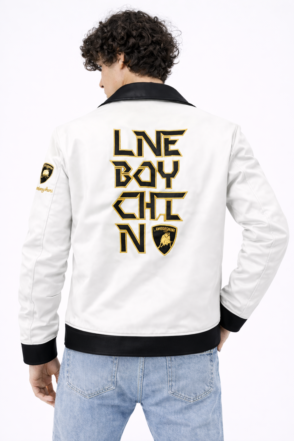 Men’s White Premium Biker Jacket with Gold Detailing