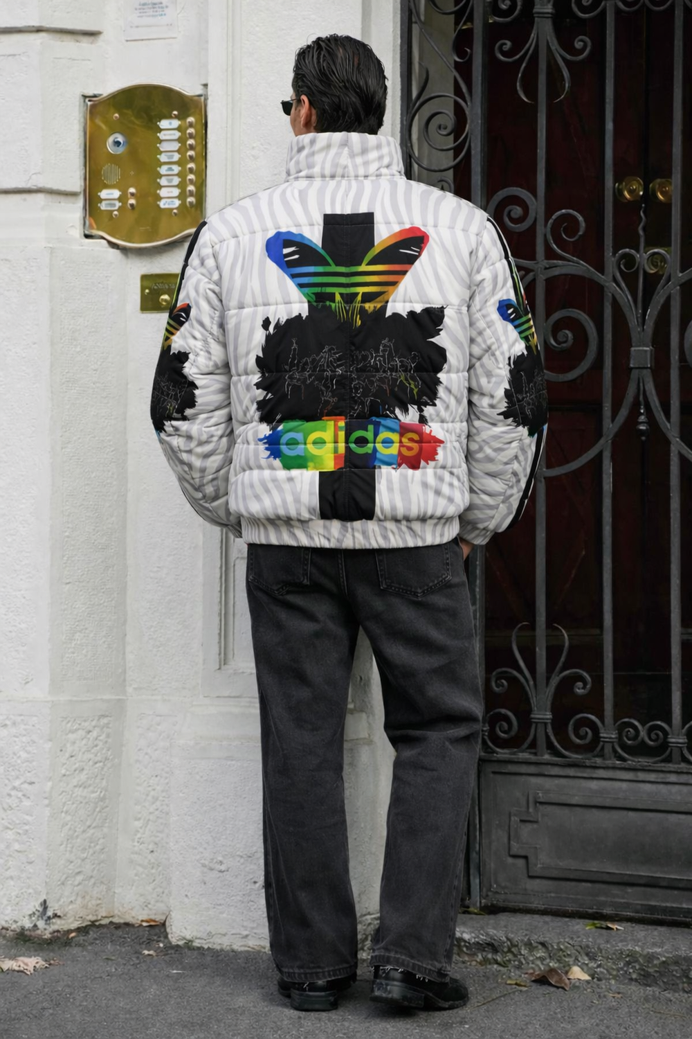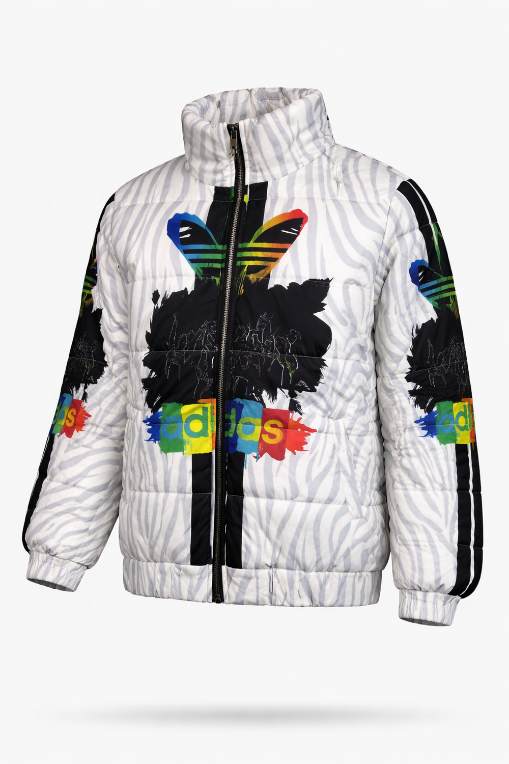 Men’s White Printed Puffer Jacket – Graphic Winter Jacket