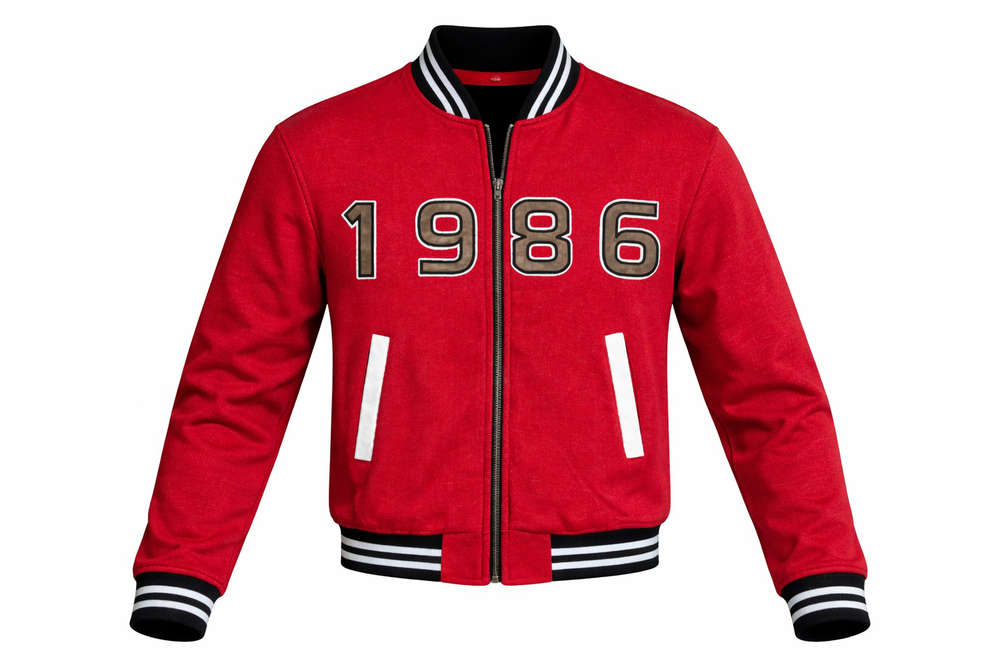 Red Varsity Bomber Jacket with 1986 Print – Classic Streetwear Style