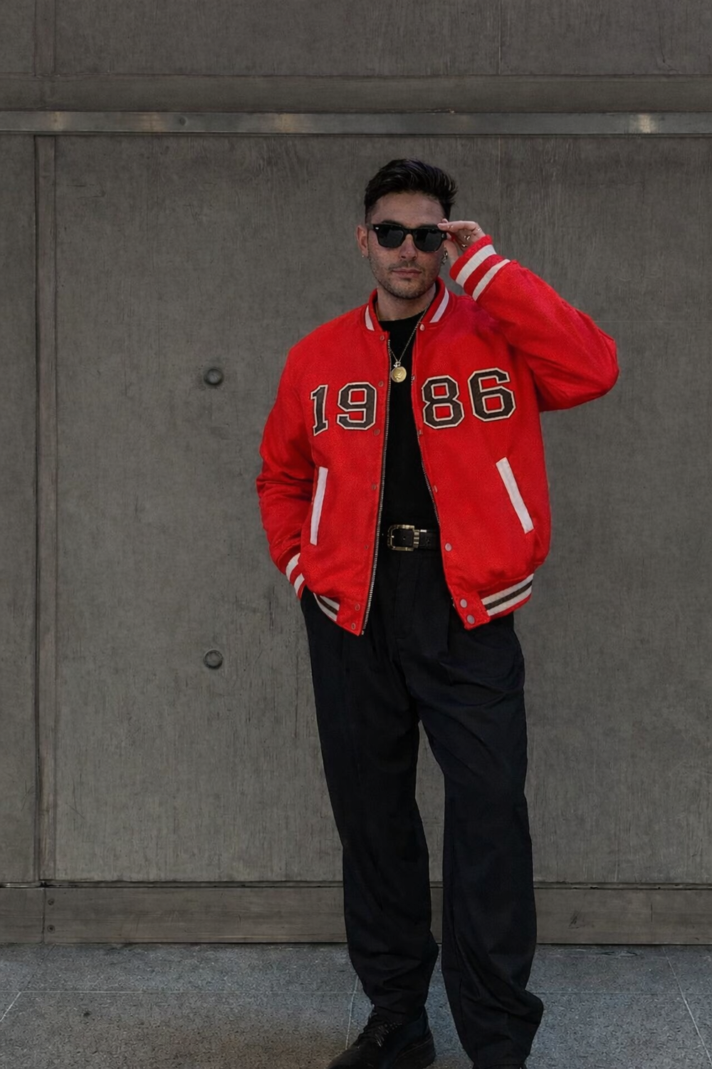 Make a bold style statement with this red varsity bomber jacket featuring a classic 1986 front print. Designed with contrast ribbed collar, cuffs, and hem, this jacket blends sporty heritage with modern street fashion. The front zip closure and functional side pockets provide everyday comfort and practicality.